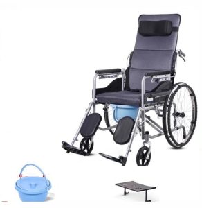 Le fauteuil roulant avec pot, aussi appelé fauteuil garde-robe ou fauteuil roulant WC , combine les fonctionnalités d'un fauteuil roulant classique avec celles d'une chaise percée.